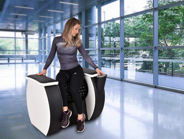In the massager set, there is a chair and a platform that facilitate massage of various body parts like buttocks, thighs, abdomen, etc.